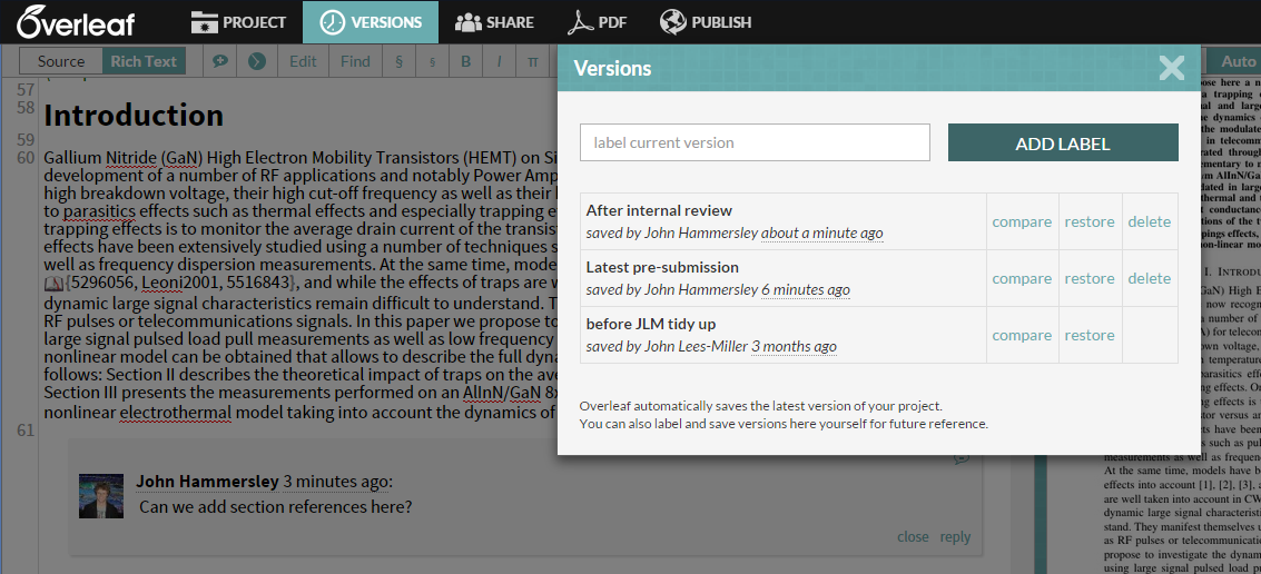 Overleaf Comparing Versions In The Overleaf Project History Facebook